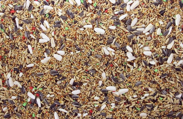 milletzaad. kanariezaad. haver. zonnepitten. boekweit. paddy. lijnzaad. kardizaad. hennepzaad. sorghum. nigerseed. vogelpaneermeel.