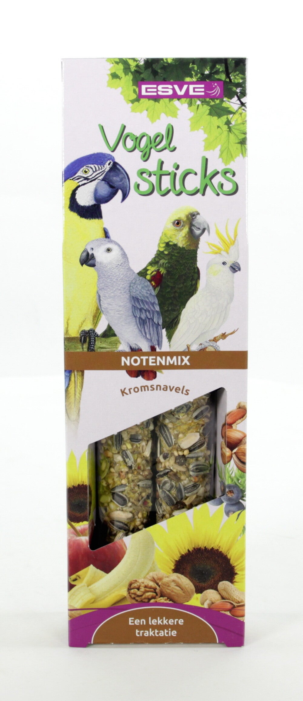 ESVE sticks zijn smaakvolle voedings- en traktatie stangen, boordevol belangrijke voedingsstoffen, geheel afgestemd op de behoefte van uw vogel(s).