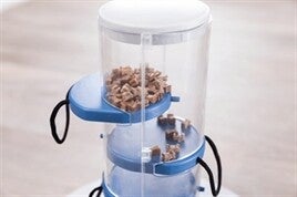 De schijven moeten worden weggetrokken door de hond, waardoor de snacks naar beneden vallen en steeds dichter in bereik van de hond komen.